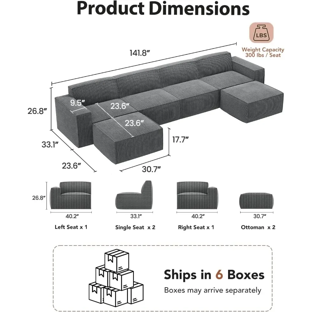 - Cloud-Like Comfort with Lasting Support: Experience ultimate relaxation with our 16.3" thick high-resilience foam, providing firm support and a plush, cloud-like seating experience. The spacious sectional sofa with its 141.8" width, 23.6" deep seats, and 9.5" wide armrests, offers plenty of space to lounge and a perfect place to rest your drinks or décor. Transform any room into a cozy haven for lounging, hosting, or enjoying family movie nights.