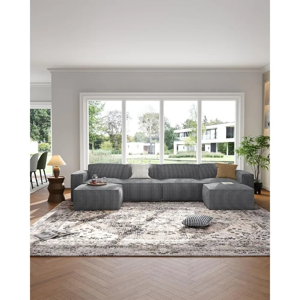 - No Assembly Needed: Skip the hassle and save time—just unpack the pieces, gently tap each one to boost its elasticity and fluff, and you're good to go. The U-shaped couch comes with anti-slip particles on the bottom to keep it in place, and within 72 hours, this versatile sofa set will fully regain its original shape, ensuring the perfect relaxation experience.