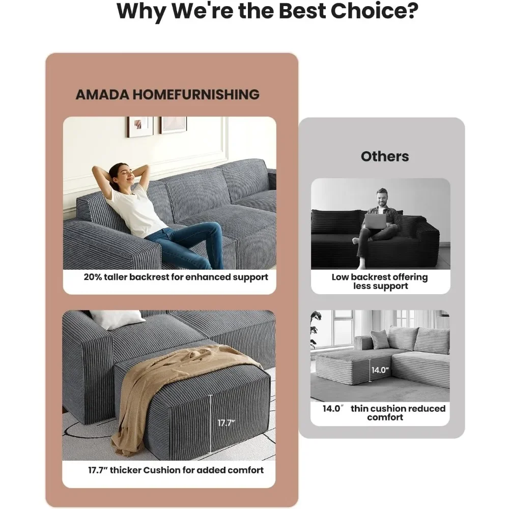 Amada 142" Sectional Couch with L-Shape Chaise,Corduroy Cloud Couches with Deep Seats &High-Back,Upholstered Couches for Living